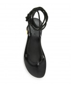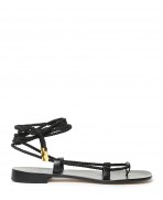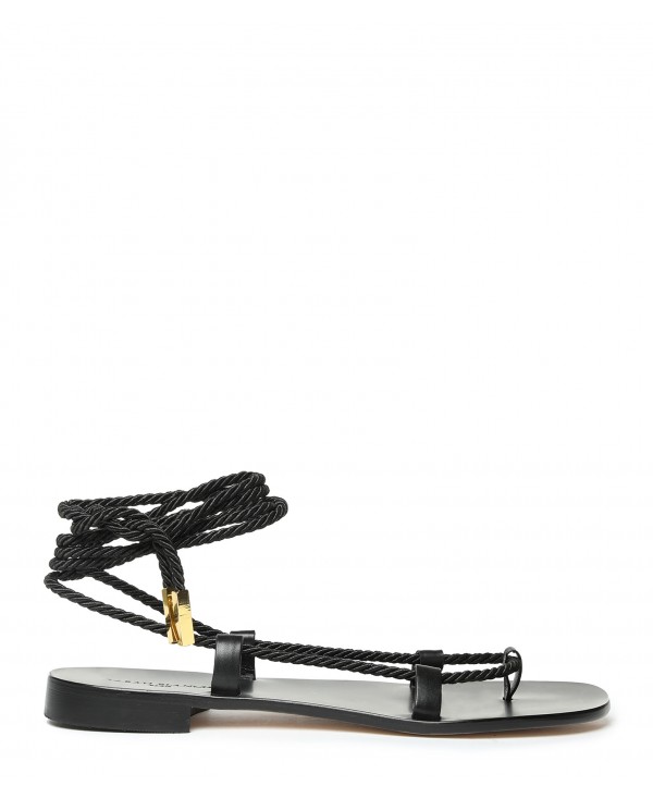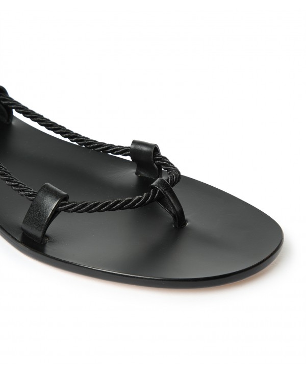 Black leather gladiator sandals with black satin rope