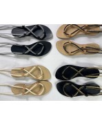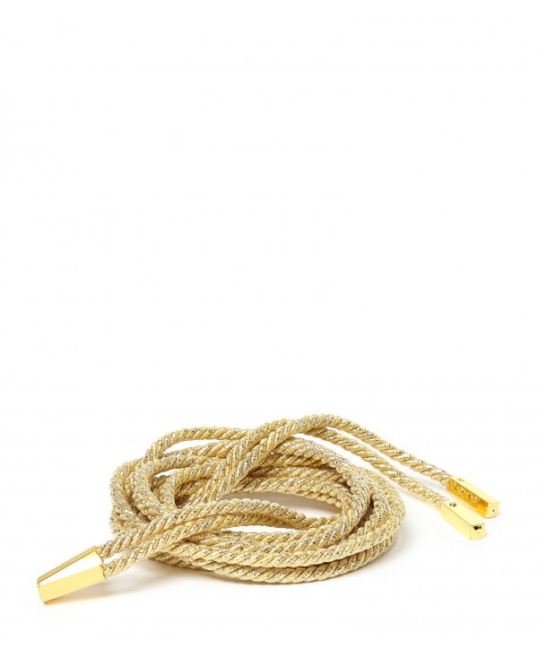 The White Tarah Blanche gladiator sandals are an elegant interpretation of the classic gladiator model. With a black leather sole and a wooden heel in black color made by hand in Italy. The sandal is adorned with a gold lurex rope, finished with a gold metal toe cap that attaches with leather loops to weave around the ankle to bring a refined touch.