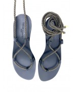 The White Tarah Blanche gladiator sandals are an elegant interpretation of the classic gladiator model. With a black leather sole and a wooden heel in black color made by hand in Italy. The sandal is adorned with a bronze lurex rope, finished with a gold metal toe cap that attaches with leather loops to weave around the ankle to bring a refined touch.