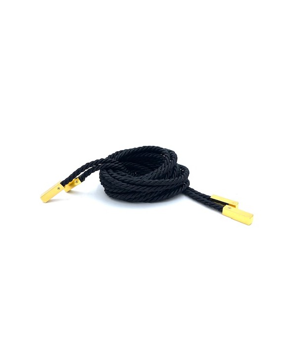 The White Tarah Blanche gladiator sandals are an elegant interpretation of the classic gladiator model. With a black leather sole and a wooden heel in black color made by hand in Italy. The sandal is adorned with a cord satin black color, finished with a gold metal toe cap that attaches with leather loops to weave around the ankle to bring a refined touch.