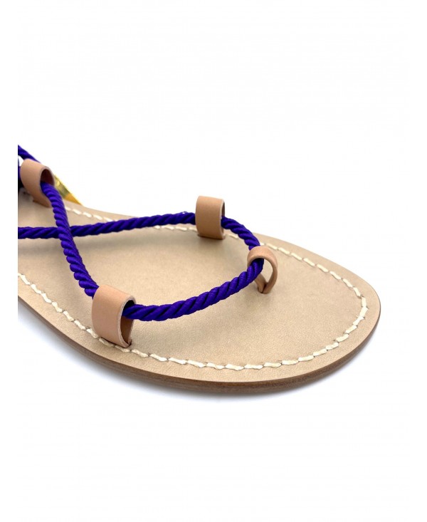 Natural leather gladiator sandals with purple satin rope