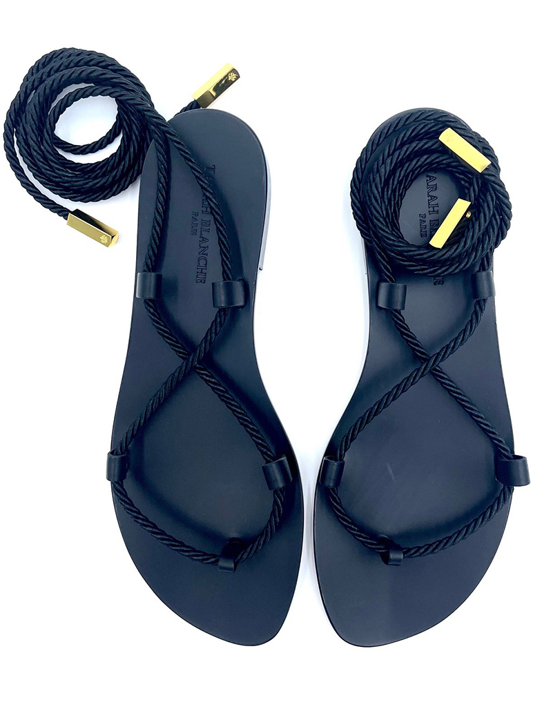 Sandales Gladiateur en cuir naturel à corde satin kaki