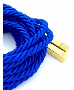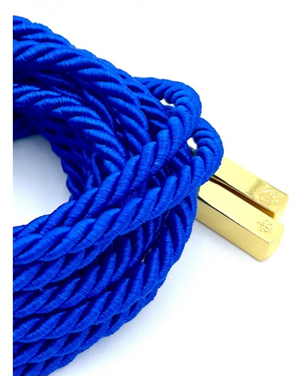 Cordage satiné bleu roi avec embouts cylindres métalliques doré