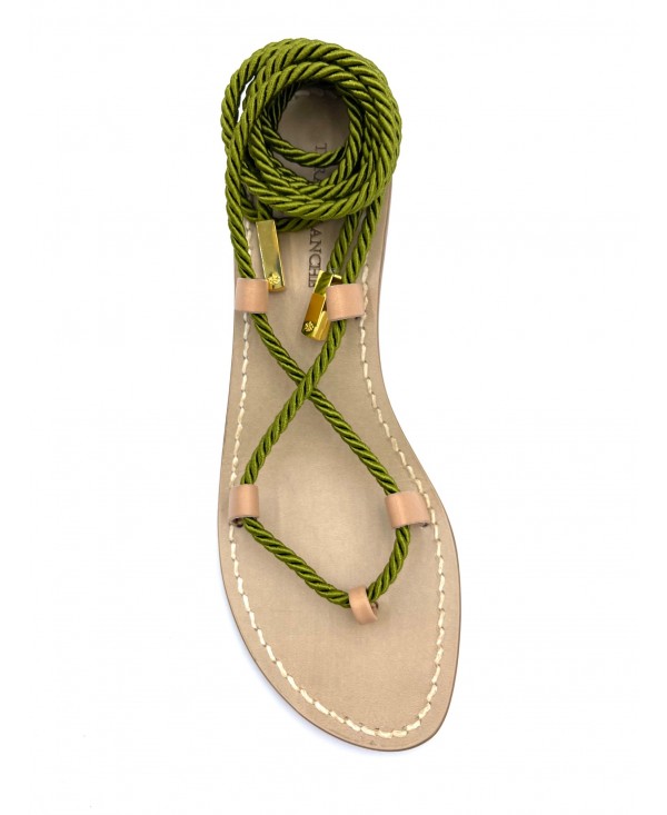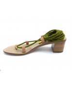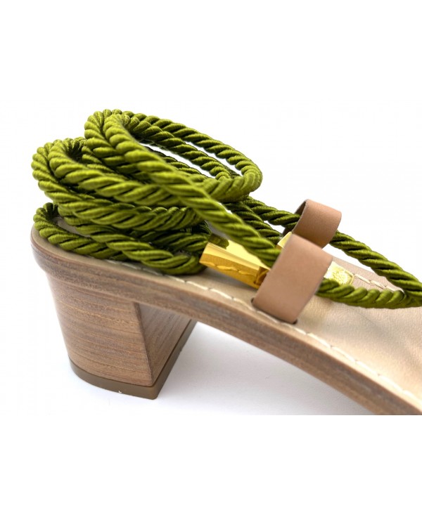 Sandales Gladiateur à talons en cuir naturel à corde satin kaki