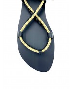 Les sandales gladiateur Tarah Blanche sont une interprétation élégante du modèle gladiateur classique. Avec une semelle de cuir et un talon de bois réalisés de façon artisanale en Italie. La sandale est ornée d'une double corde de satin de couleur noire et lurex couleur or, terminée par un embout métallique doré qui s’attache par des passants de cuir ,à entrelacer autour de la cheville pour apporter une touche raffinée.