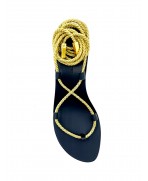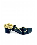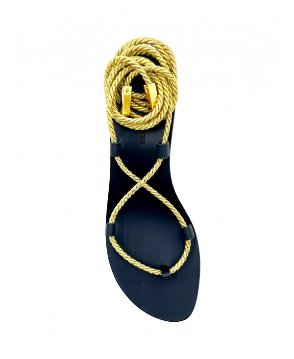 Sandales Gladiateur à talons en cuir noir à corde lurex or