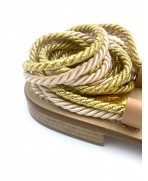 Sandales Gladiateur en cuir naturel à double corde lurex or et satin nude