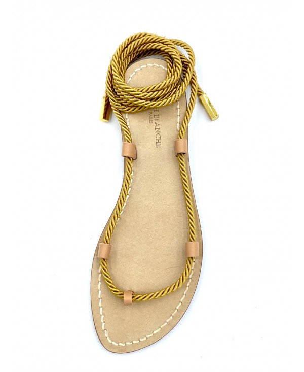 Sandales Gladiateur en cuir naturel à corde satin vieil or
